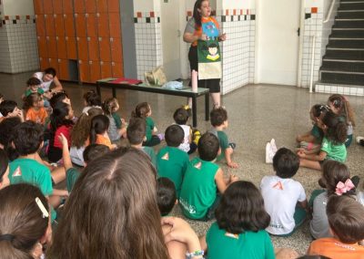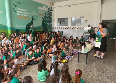 Os alunos mergulharam em um momento mágico de contação de histórias, repleto de encantamento e emoção. Entre risadas e olhares curiosos, os pequenos puderam viajar por novos mundos, fortalecer o gosto pela leitura e viver experiências cheias de fantasia e aprendizado.