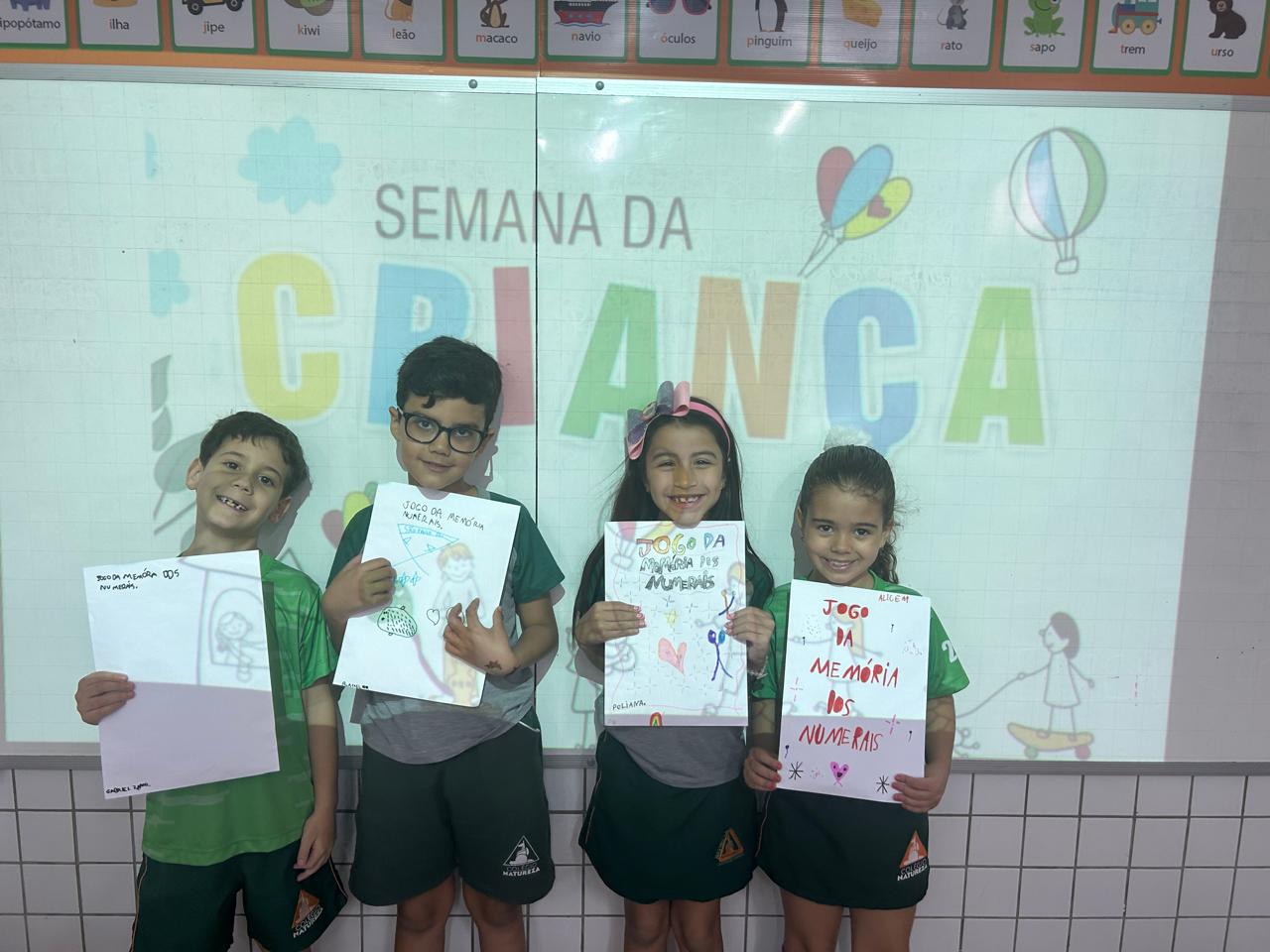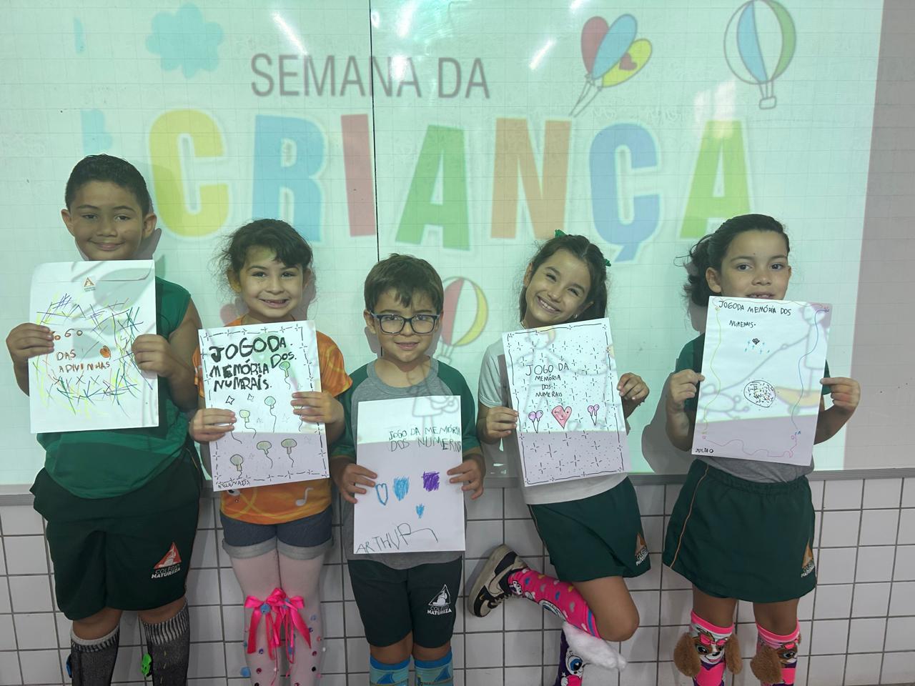 Durante a Semana da Criança, os alunos do 1º Ano M exploraram o universo dos números de um jeito lúdico e criativo! A confecção do Jogo da Memória dos Numerais estimulou a concentração, o raciocínio lógico e o aprendizado através da brincadeira. Cada carta colorida ganhou vida nas mãos das crianças, que aprenderam se divertindo em um momento de pura alegria e colaboração.
