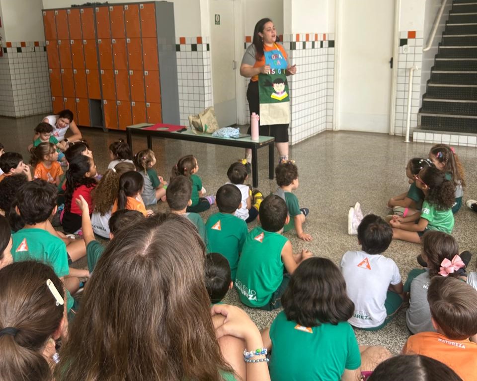 Os alunos mergulharam em um momento mágico de contação de histórias, repleto de encantamento e emoção. Entre risadas e olhares curiosos, os pequenos puderam viajar por novos mundos, fortalecer o gosto pela leitura e viver experiências cheias de fantasia e aprendizado.